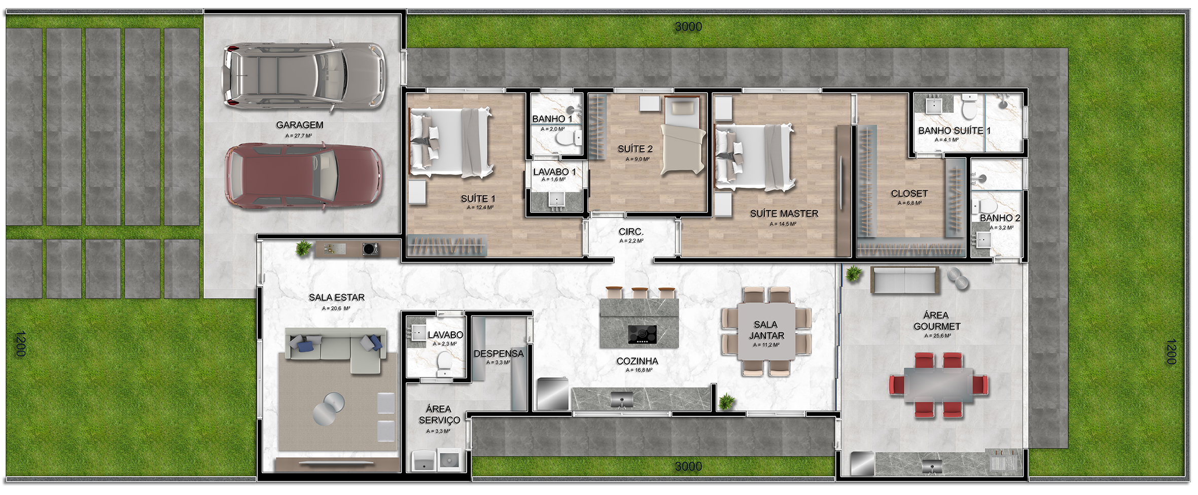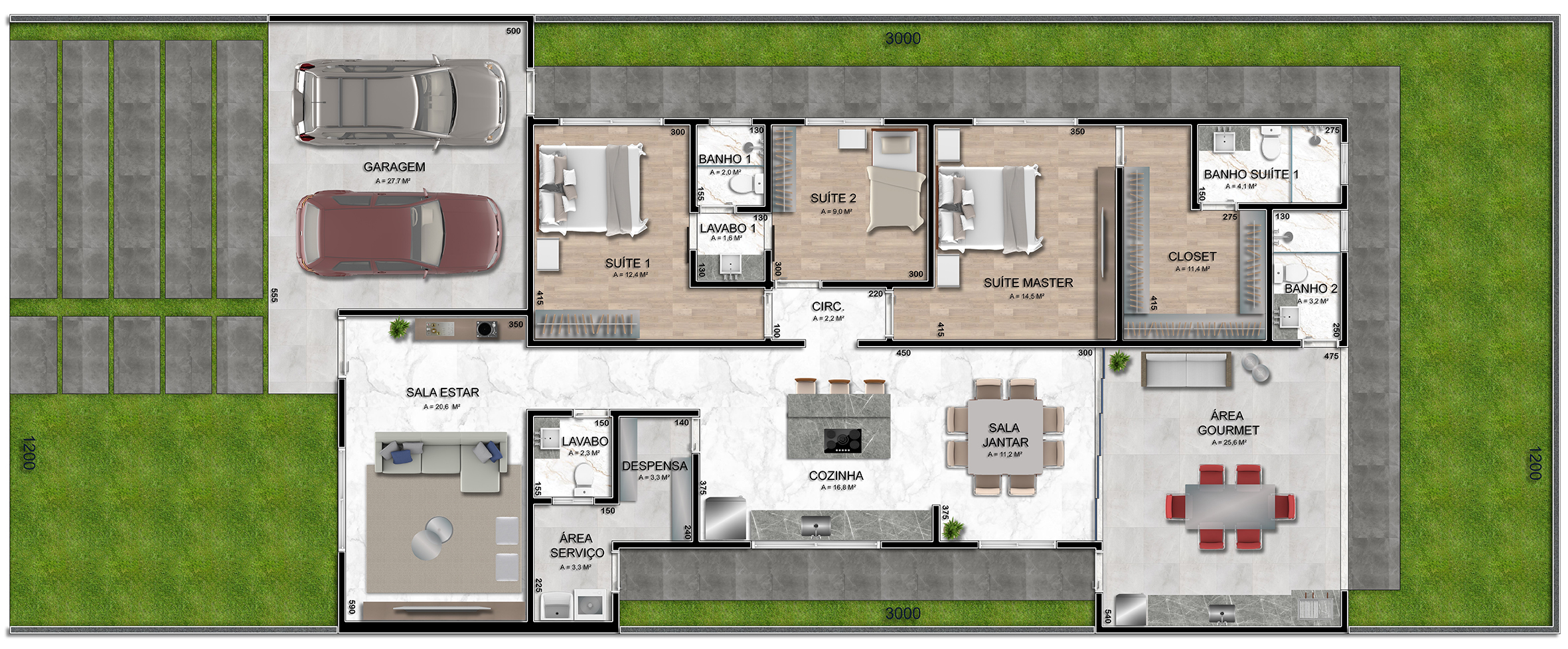 Área Projeto: 197,84 m2